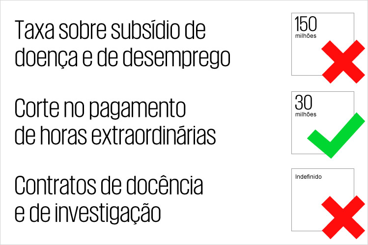 O chumbo abrange também a contribuição sobre prestações de doença e desemprego e ainda a norma referente aos contratos de docência e investigação, mas estas duas normas têm reduzido impacto orçamental.