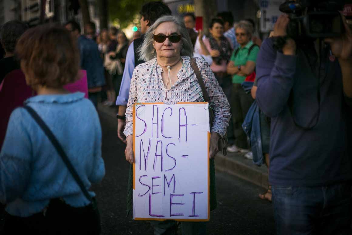 Tomé Rodrigues, cinco anos, ostenta vigorosamente um megafone decorado a preceito. Dispara a palavra “demissão” repetidamente. “Eu quero que o Governo se vá embora”, diz de uma só vez ao PÚBLICO. Paulo Rodrigues, pai e professor de Educação Física explica: “O meu filho já deve ter mais manifestações que muitos adultos. Mas só vem porque quer. Sou professor e não sei se terei emprego para o ano”.