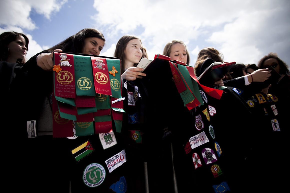 Hoje, estudantes universitários, família e amigos festejaram a conclusão do curso superior, numa cerimónia que acabou por ser a última homília da bênção das pastas a que José Policarpo presidiu.