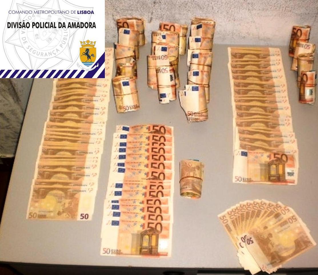 No interior da viatura foram encontrados 11.300 euros que a polícia suspeita serem falsos e que o homem usaria num esquema de burla. O agora suspeito de contrafacção de moeda terá desenvolvido uma burla na qual abordava as vítimas na rua, a quem exibia maços de papel envoltos em notas de 50€, “criando a ilusão que se tratara de grandes quantias monetárias”, descreve a PSP em comunicado. “Depois relatava aos seus alvos que achara estas elevadas quantias no solo e as vítimas como testemunhas do achado teriam direito a dividir os lucros”, acrescenta a mesma nota. Em troca do “dinheiro”, as vítimas teriam que entregar um objecto de valor ou uma quantia monetária. Após receber esse valor, o suspeito colocava-se em fuga antes que as vítimas percebessem que o “maço de notas se tratava apenas de um conjunto de papel enrolado sob uma nota falsa”.
