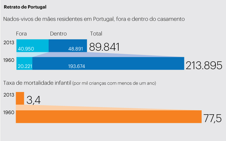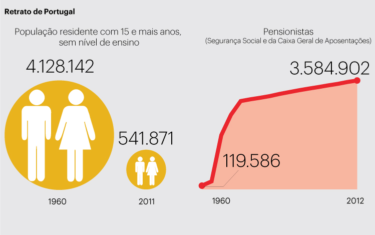 Os dados mostram uma sociedade que continua em mudança. Aumenta a população idosa — o grupo etário dos 65 ou mais anos representava, em 1960, 8% da população do país para, em 2011, chegar aos 19%. O casamento é cada vez menos uma opção – em 2012 celebraram-se 34.423 (quase menos dois mil do que no ano anterior), ao passo que em 1960 foram mais de 66 mil. As mulheres são mães cada vez mais tarde (a idade média ao nascimento do primeiro filho já vai nos 29,5 anos e era de 25 em 1960).